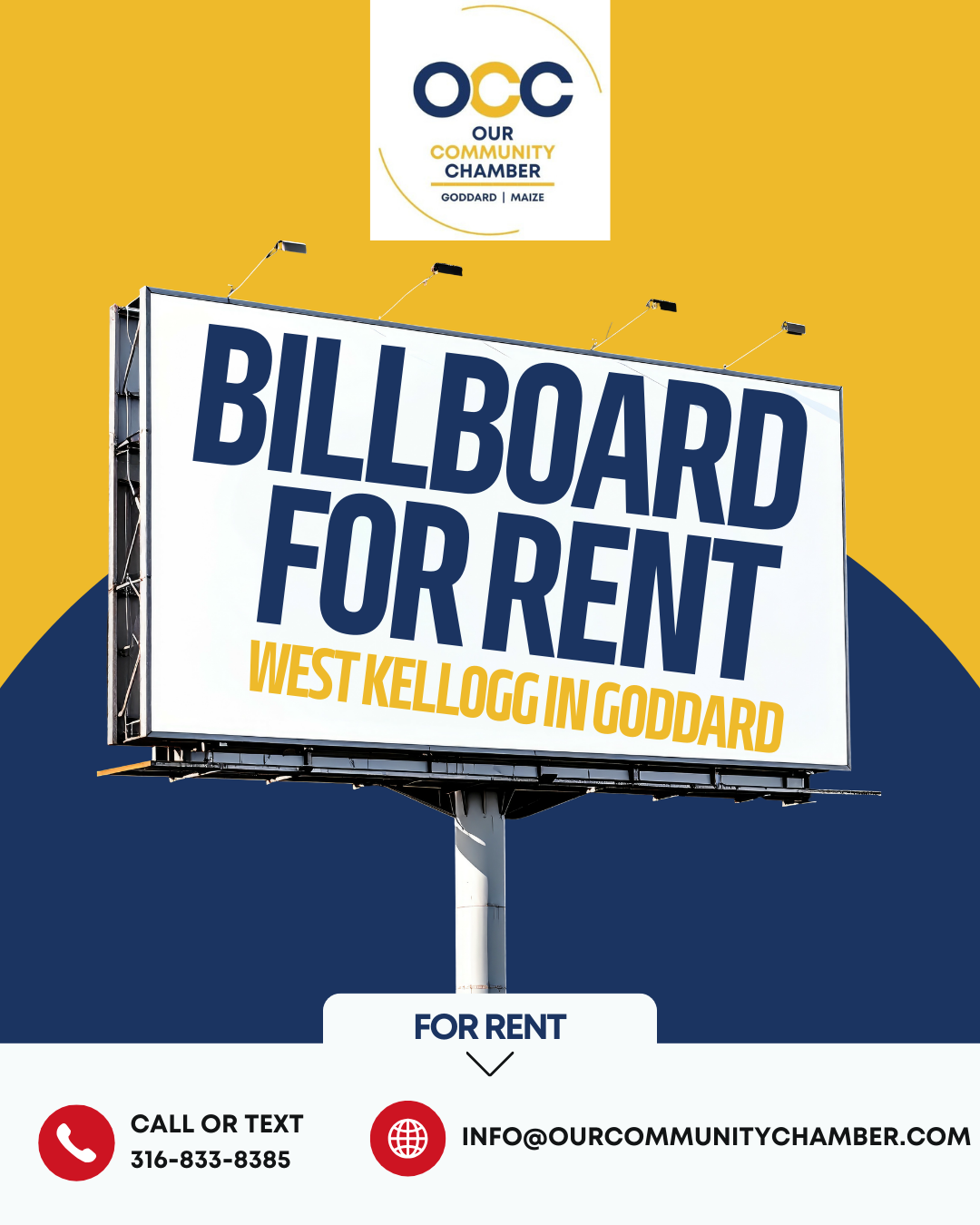 The Chamber has multiple advertising platforms such as our website (banner ads), ENewsletter and THREE Billboards on W. Kellogg Drive in Goddard! Email us for more information at info@goddardchamber.net